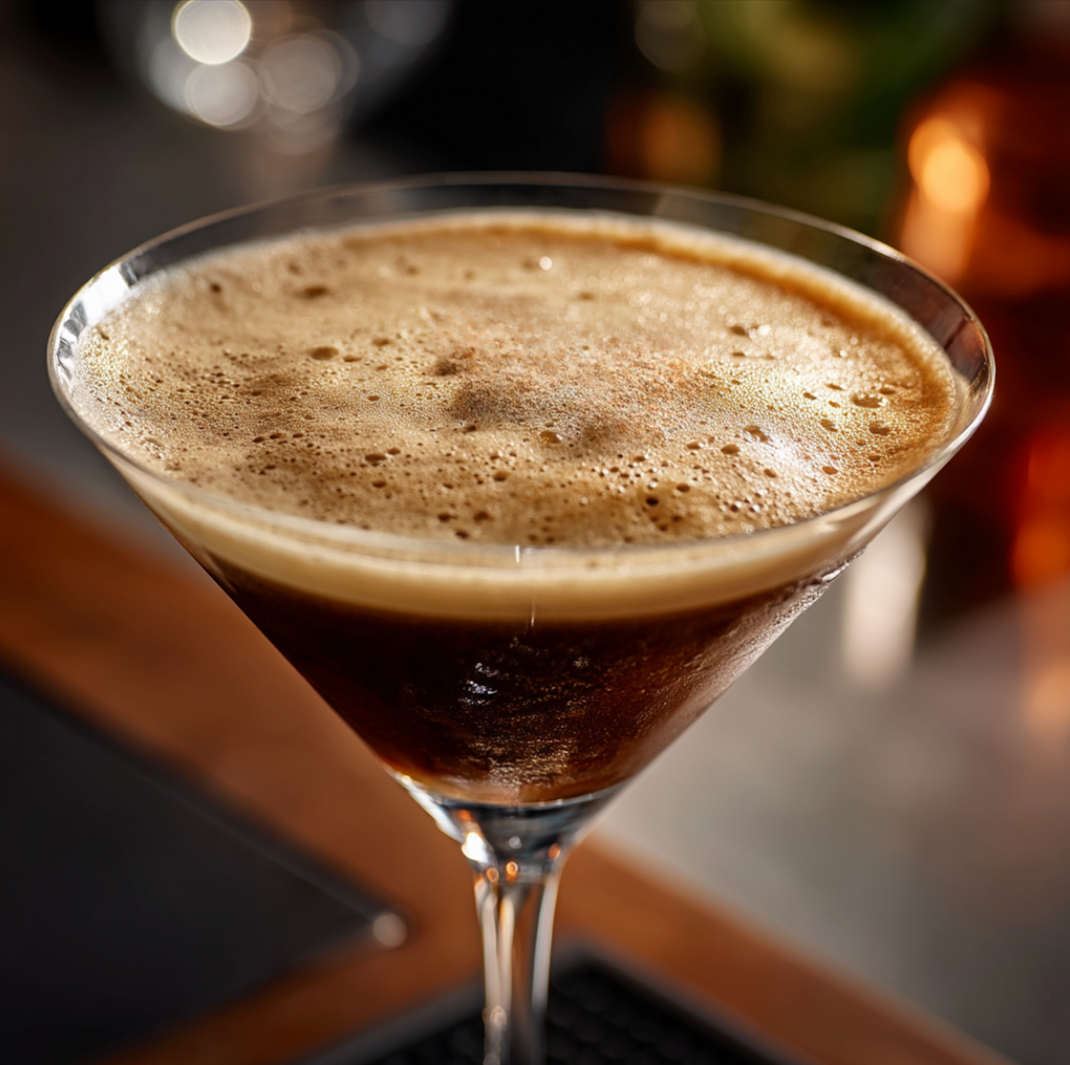 A rich, silky twist on the classic espresso martini made with bold date-seed coffee for a smooth, caffeine-free kick.