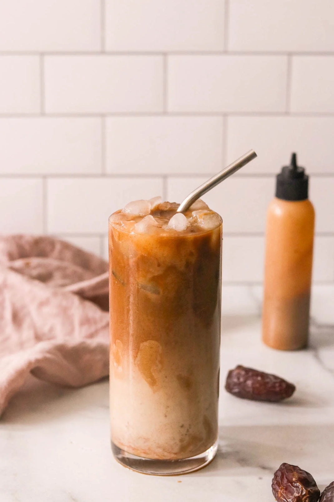 ✓ Brewed MOAS Date Coffee, Coconut Milk, Maple Syrup, Coconut Syrup, Ice